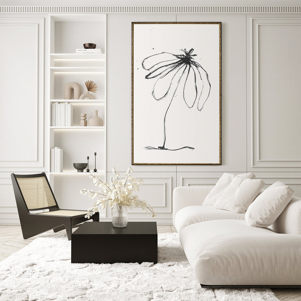 Playful oversized ink drawing. Combined with a deep frame space and heavy gilded frame, the effect is singular.