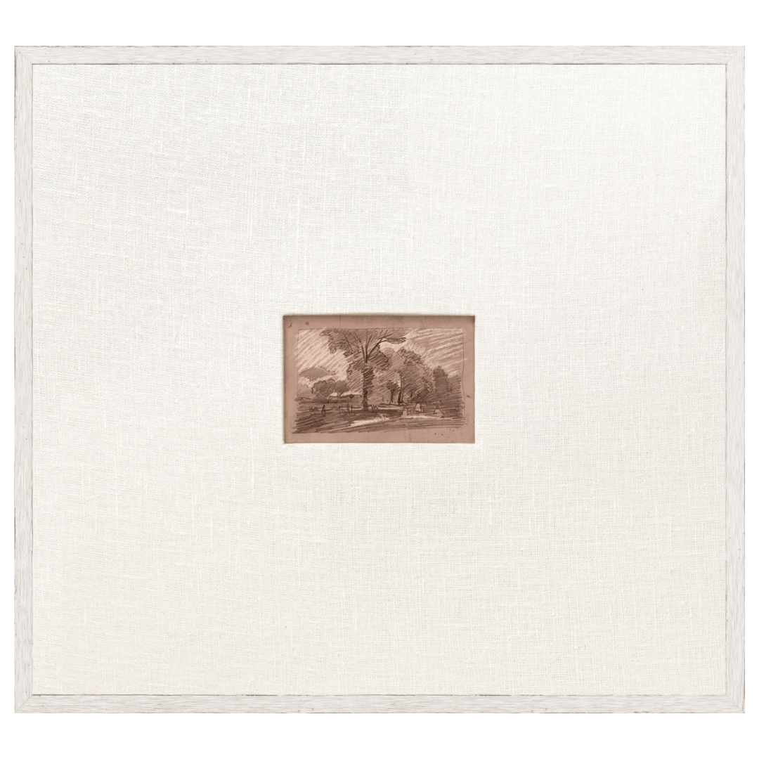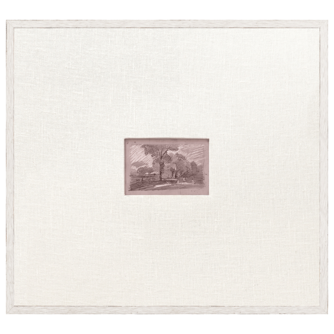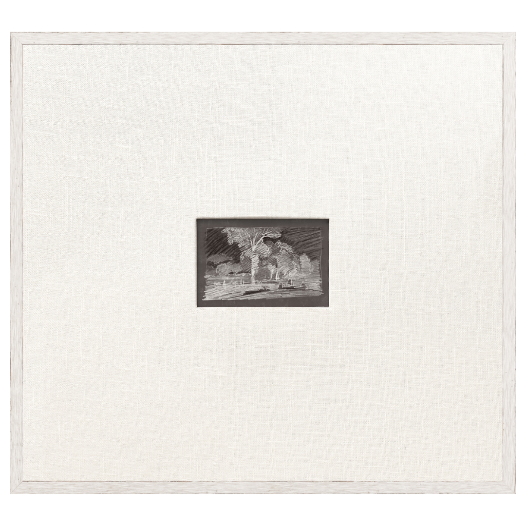 Small rural sketches offered in four colour paths: Plum Slate, Powder Blue, Mocha, and Charcoal. A faux white fabric matte surrounds each sketch for a clean, fresh appeal.
