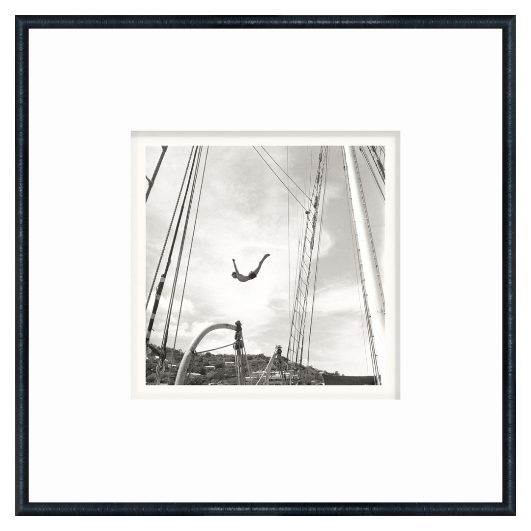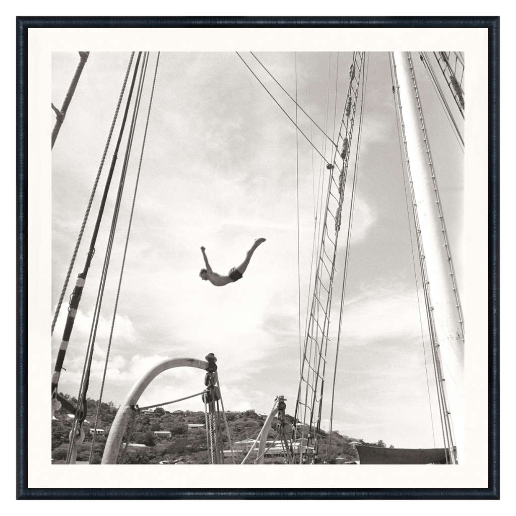 Idealized nostalgia, captured in black and white photography from the mid 20th century. Framed in a black moulding with a linear texture.
