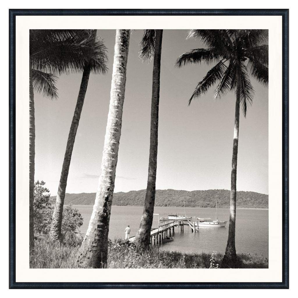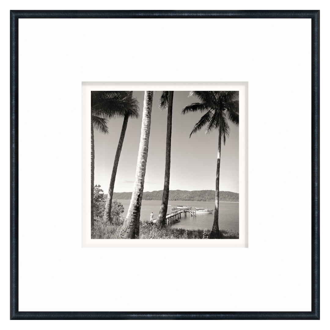 Idealized nostalgia, captured in black and white photography from the mid 20th century. Framed in a black moulding with a linear texture.