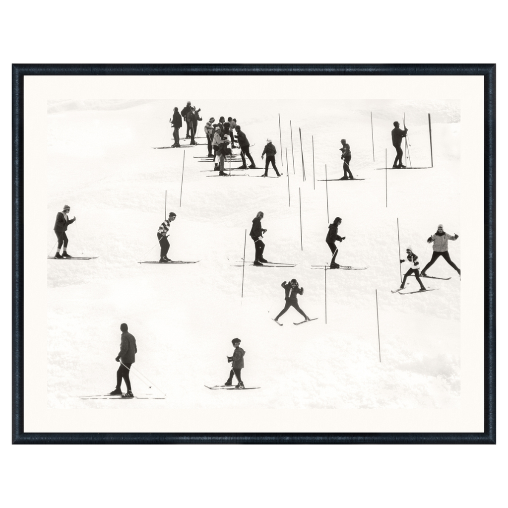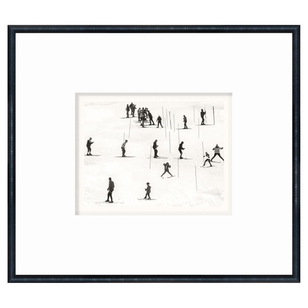 Idealized nostalgia, captured in black and white photography from the mid 20th century. Framed in a black moulding with a linear texture.