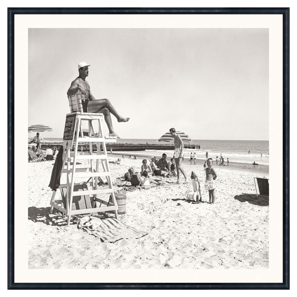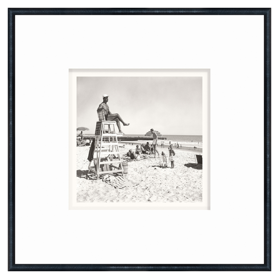 Idealized nostalgia, captured in black and white photography from the mid 20th century. Framed in a black moulding with a linear texture.
