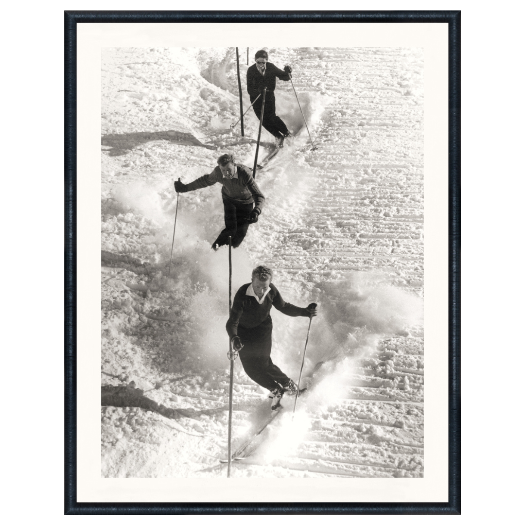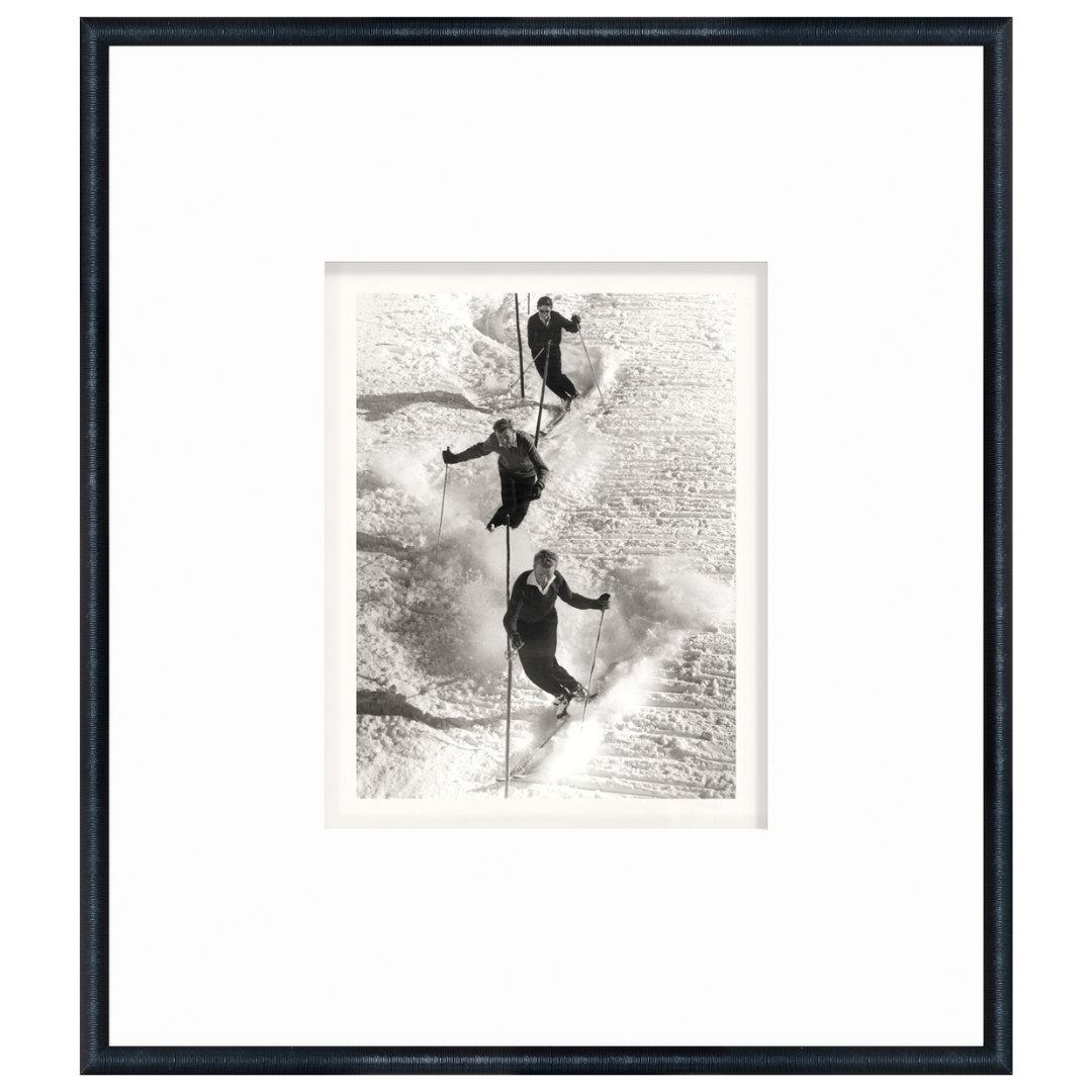 Idealized nostalgia, captured in black and white photography from the mid 20th century. Framed in a black moulding with a linear texture.