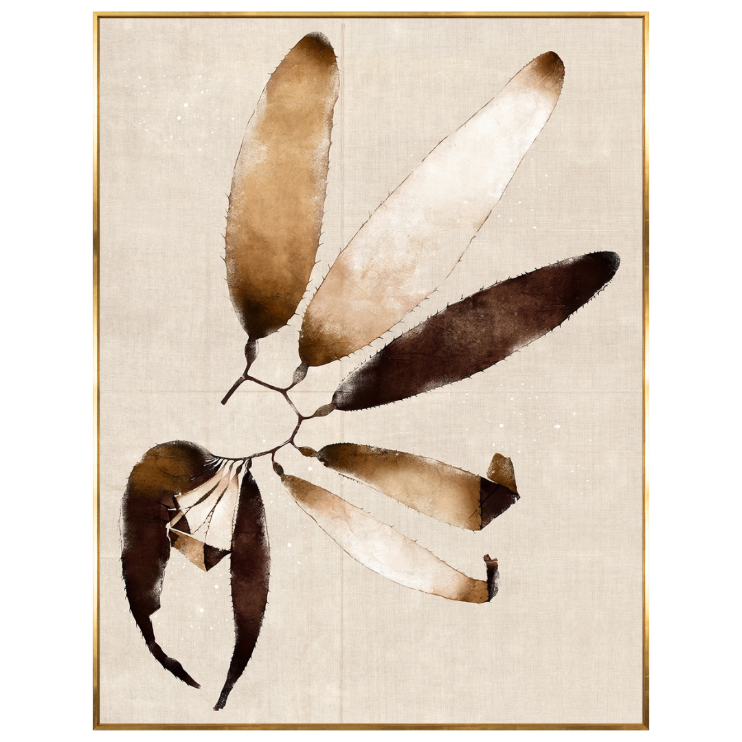 This seaweed pressing features warm tones of brown, red, white, and ivory on a soft linen ground. The delicate lines and translucent textures lend this image a sense of exquisite elegance, while its shapes and composition add interest.