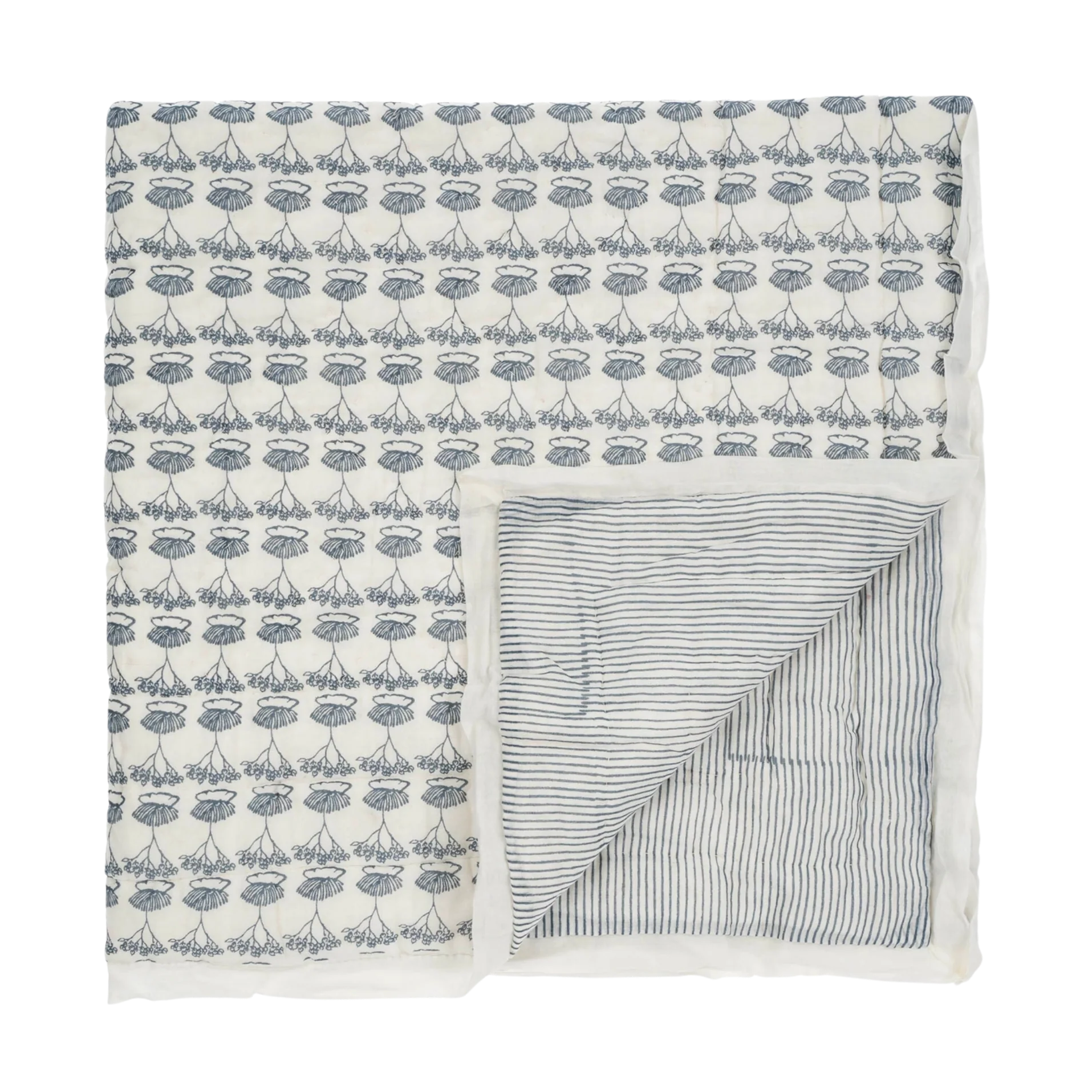 Block Print Botanical Muslin Baby Quilt Blue