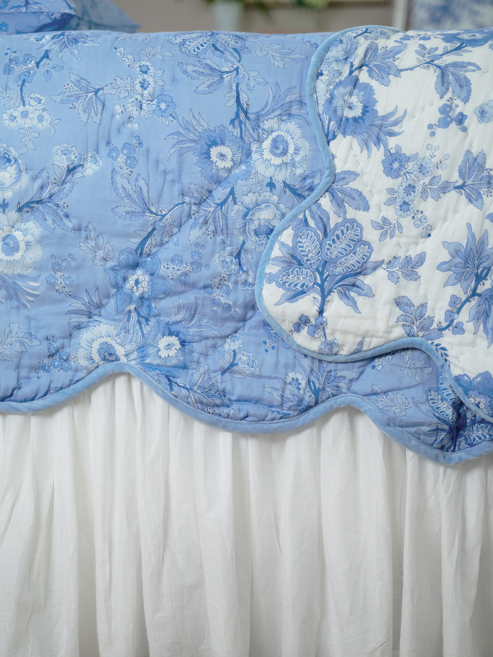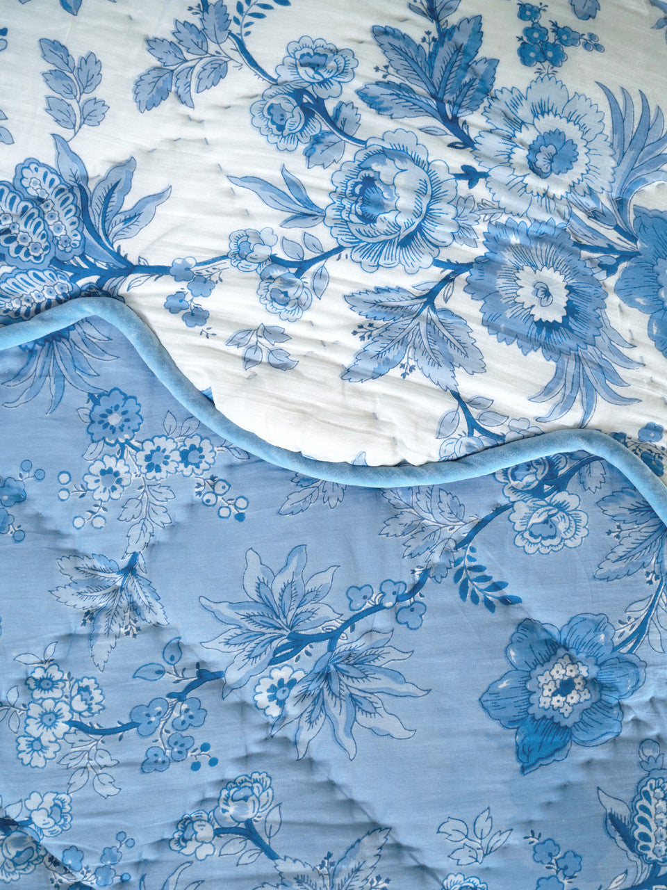 Dreamy by design, our double sided quilts and cotton duvets are coveted for their exceptional beauty and comfort. Hand quilted with velvet scalloped piping.