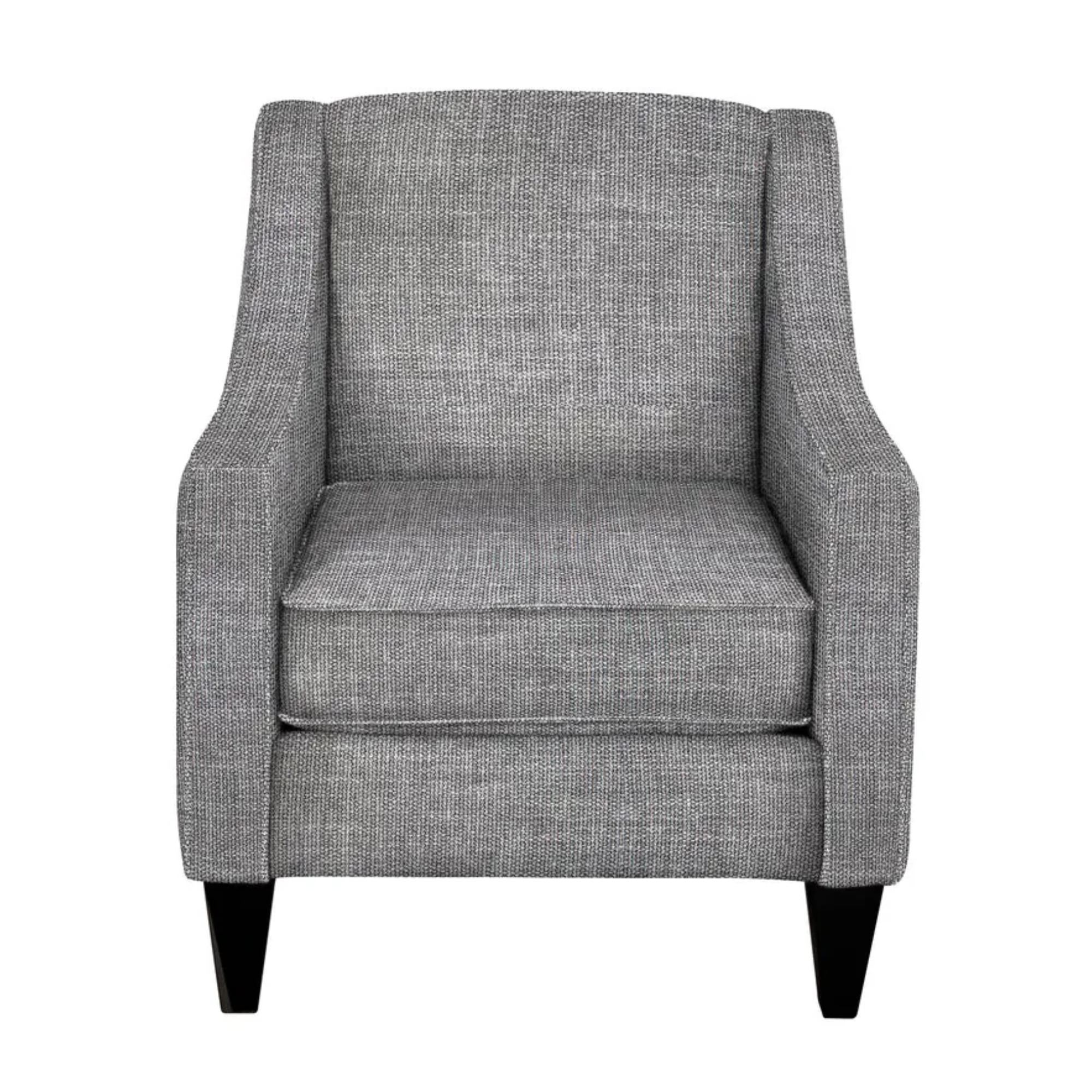 The Jenna Chair offers a perfect balance of classic style and everyday comfort. With clean lines, gently sloped arms, and tailored piping detail, this chair brings a refined yet relaxed look to any living space. Its supportive seat cushion and structured back create a comfortable place to sit while maintaining a polished silhouette. Supportive box seat cushion with foam core and fibre wrap. Fibre-filled back cushion for comfort and support.