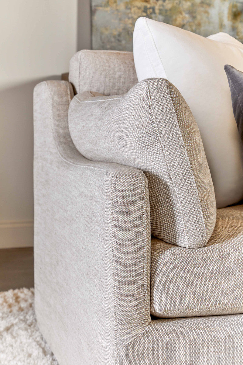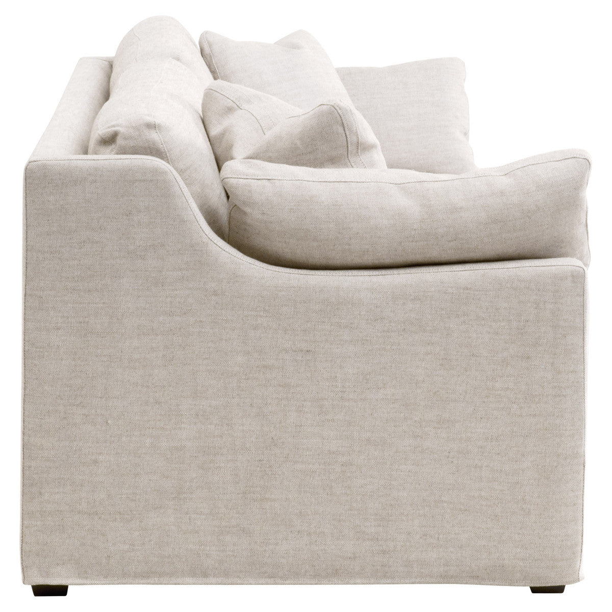 A new take on our best selling slipcover sofa, the Lena offers an updated slope arm in a durable bisque fabric. Reversible seat cushions with tie-downs to prevent movement, the Lena is as practical as it is stylish. 8-way hand tied suspension results in a superior sit and feel.