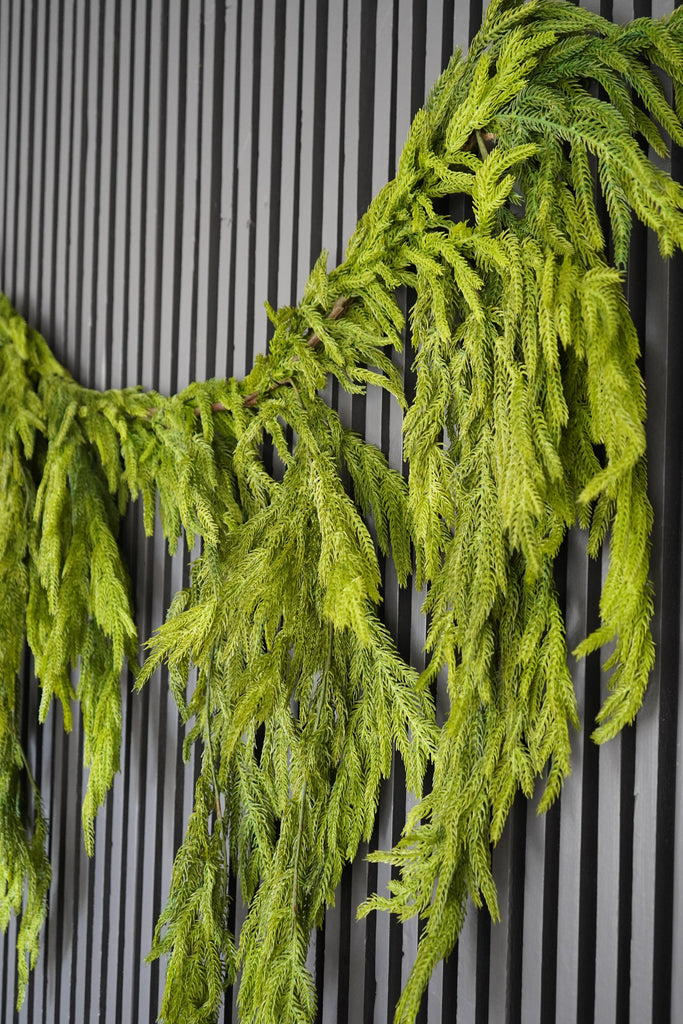 Our best-selling Fresh Touch Norfolk Pine Dripping Garland is back! This customer-favourite features lush green needles that capture the essence of a genuine evergreen tree - without the mess! You get all the drape, and none of the dropped needles, making it the perfect addition to your mantle or staircase.