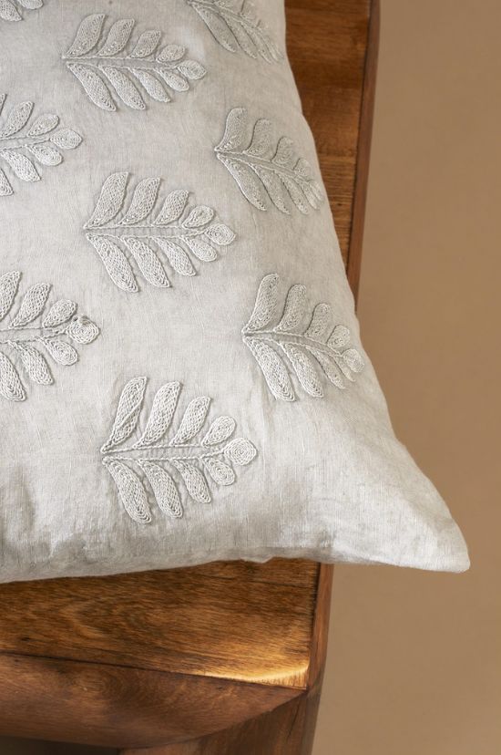 Add a touch of nature-inspired elegance to your space with the Orchard Pillow in Fog. Crafted from a soft linen and cotton blend, this lumbar pillow features delicate cotton-embroidered botanical detailing that adds texture and depth. Its versatile fog hue and intricate embroidery make it an ideal layering piece for sofas, beds, or accent chairs, effortlessly blending sophistication with comfort.