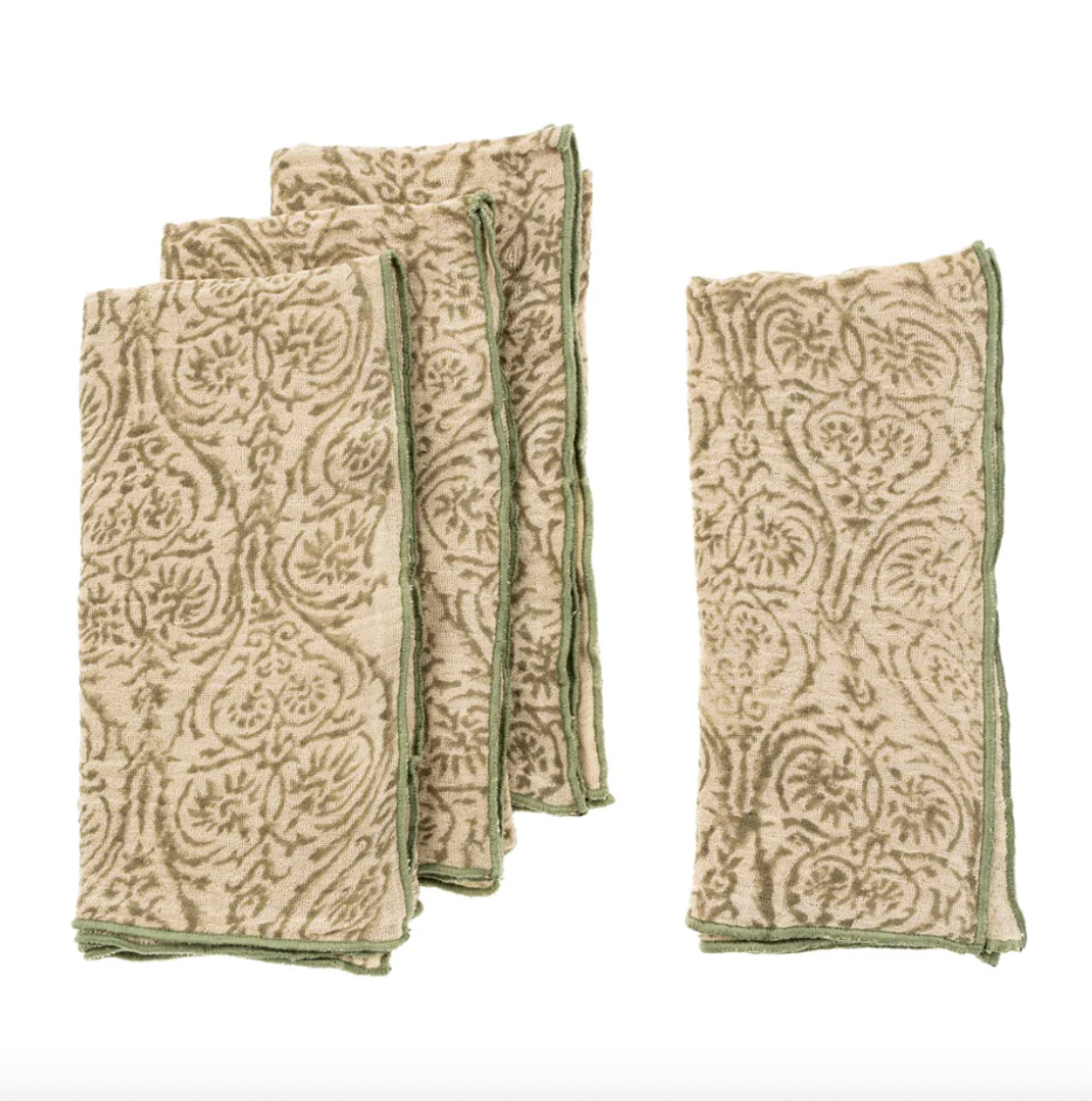 These block printed napkins display creativity and craftsmanship in every detail. Handmade from double-gauze crinkle cotton with traditional block-printed pattern and over-lock embroidered edges, they bring rich hues and beautiful patterns to your dining room styling.