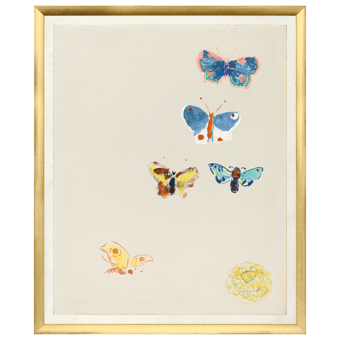 A beautiful, fresh watercolour of a stunning collection of colorful butterflies and flowers by Odilon Redon. Redon was known for his surreal paintings created in the early 20th Century and his influence on both Surrealism and Dadaism.