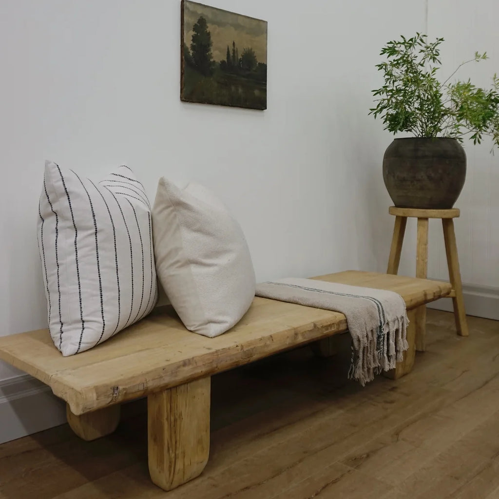 Our Gilmore Coffee Table/Bench is a versatile piece for any living space. Its wood frame reveals true craftsmanship, as it has been reclaimed from an old wooden door