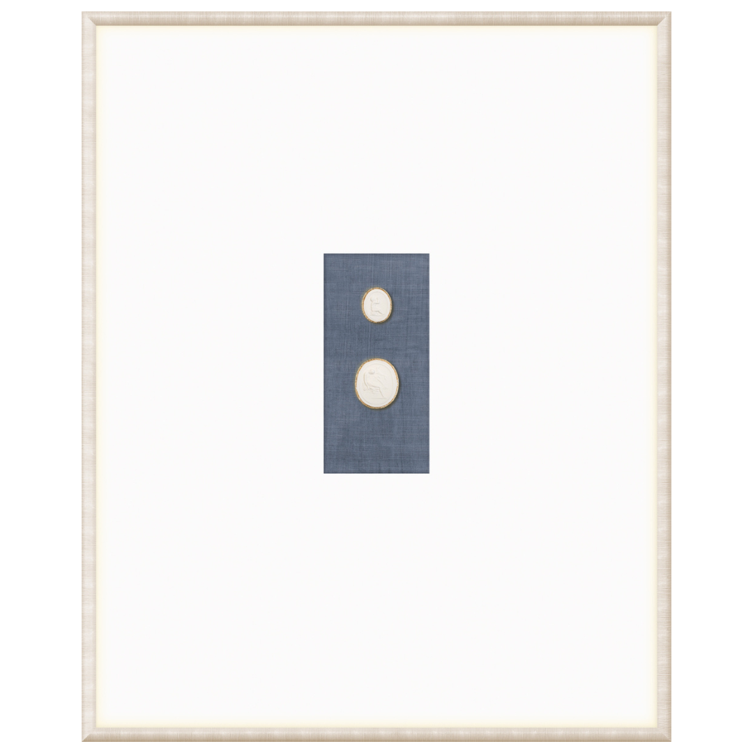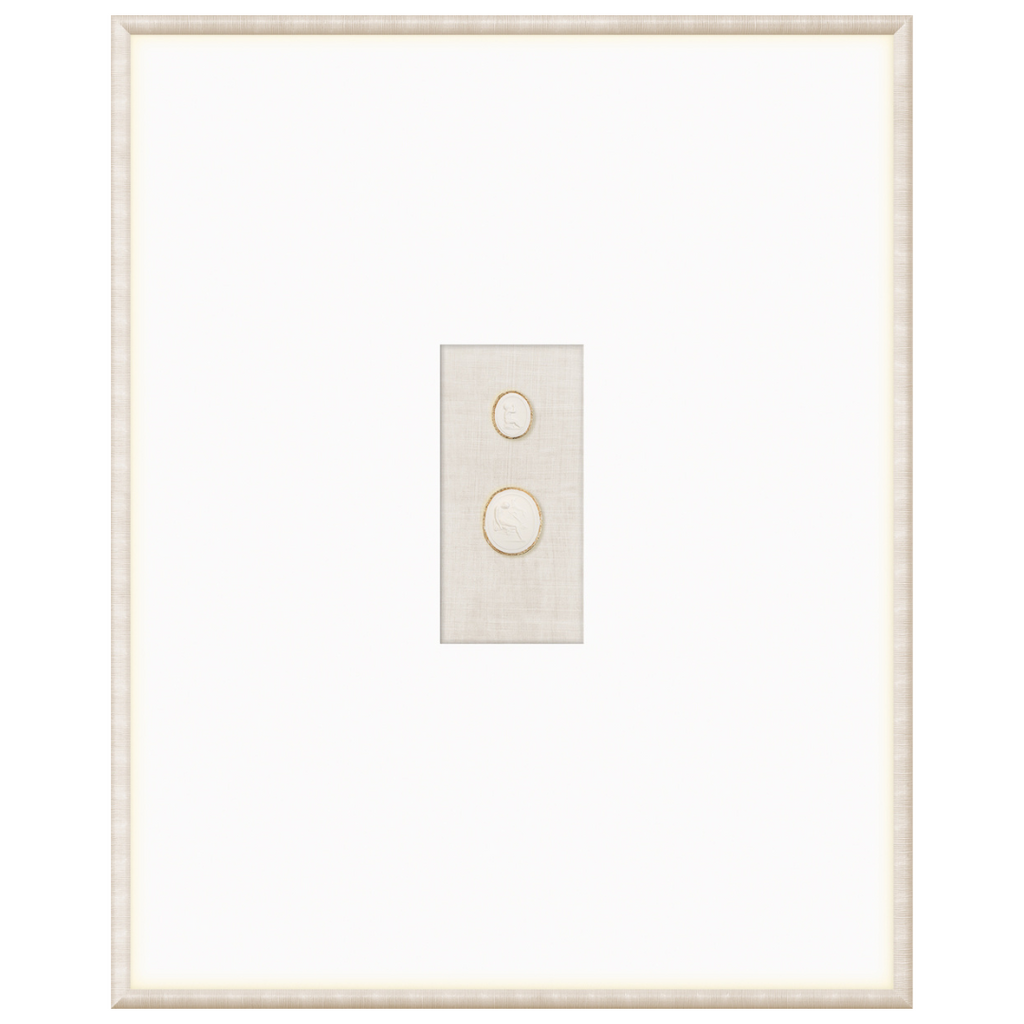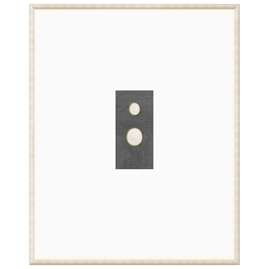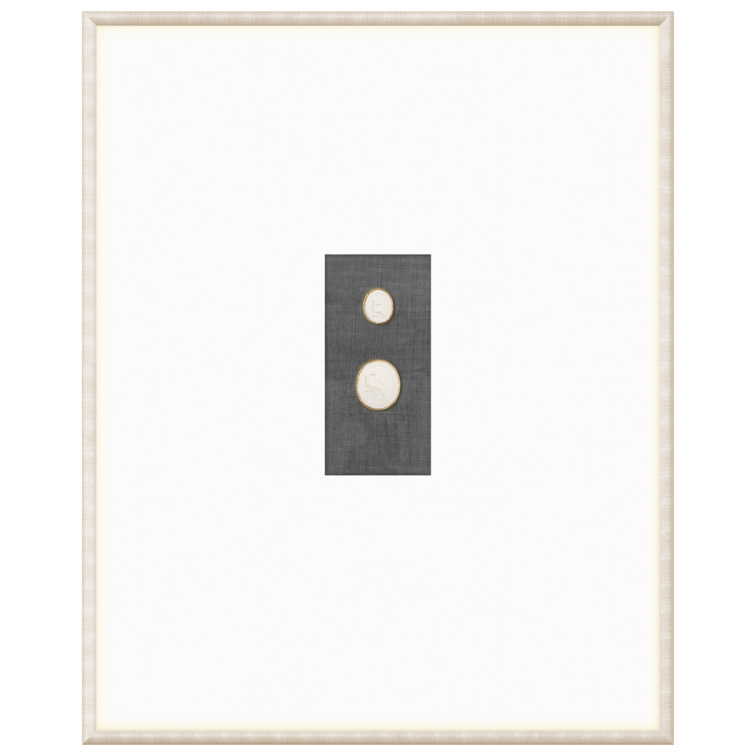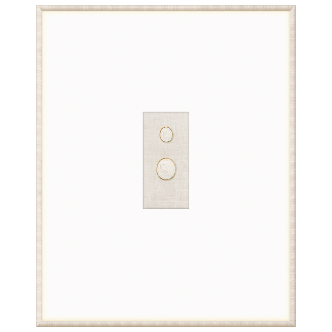 Our collection of Intaglios features both mythological and historical figures. Each one is hand-cast and gilded with fine gold filigree along the upper edge, framing the carved images and making them truly unique pieces. Each grouping is mounted on a linen texture background in a variety of colour options. They are framed in a light, neutral-toned moulding with a striated texture and a wide, raised matte with gilded framespace, giving them even more elegance and luxury. With our wide variety of arrangements and different combinations of Intaglios, you’re sure to find the perfect groupings for you.