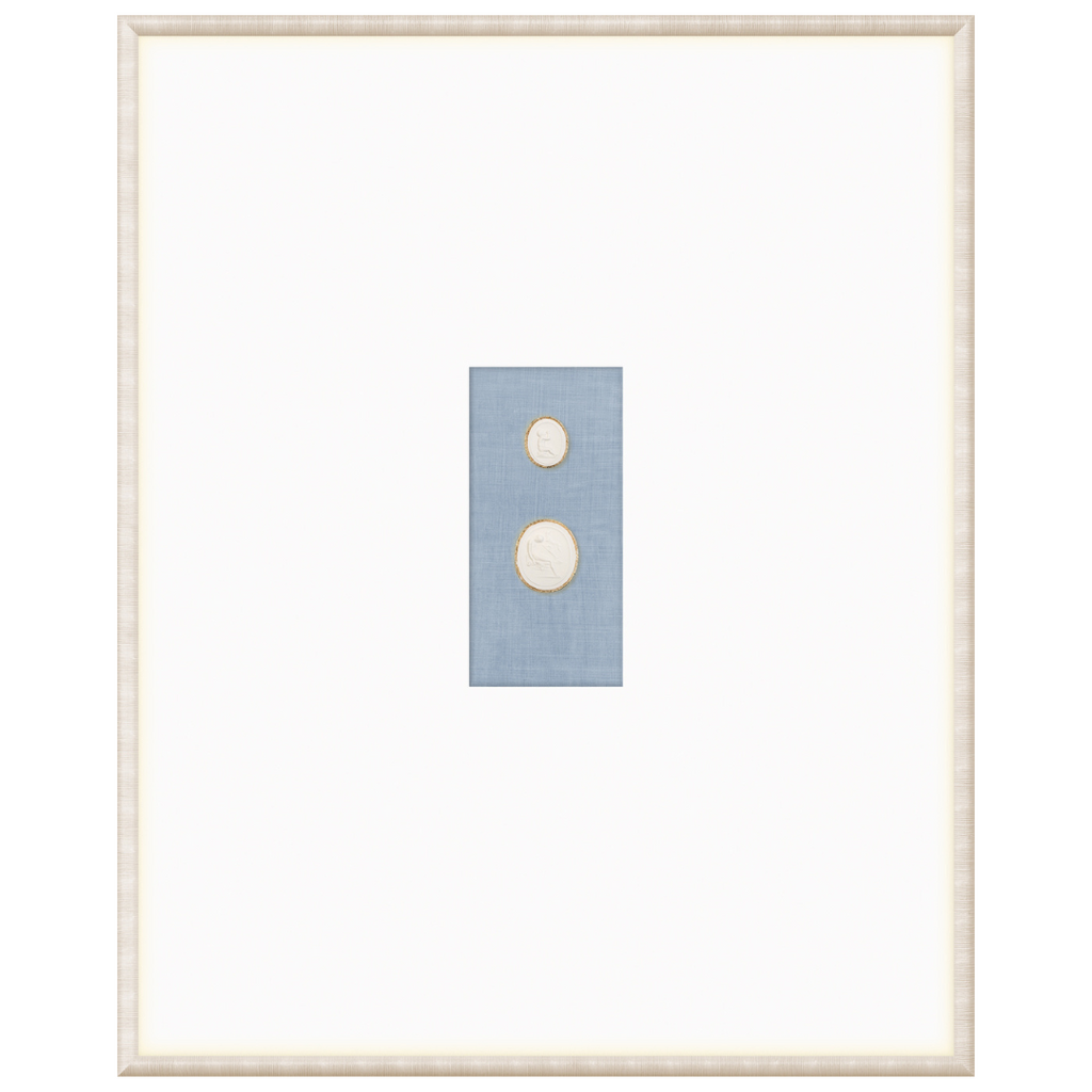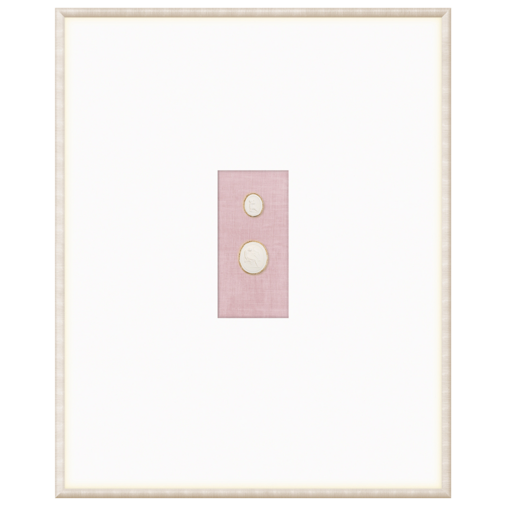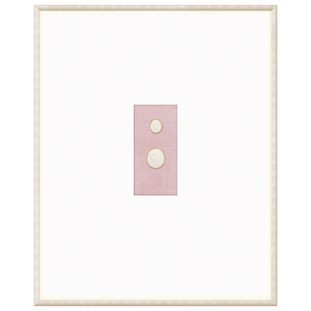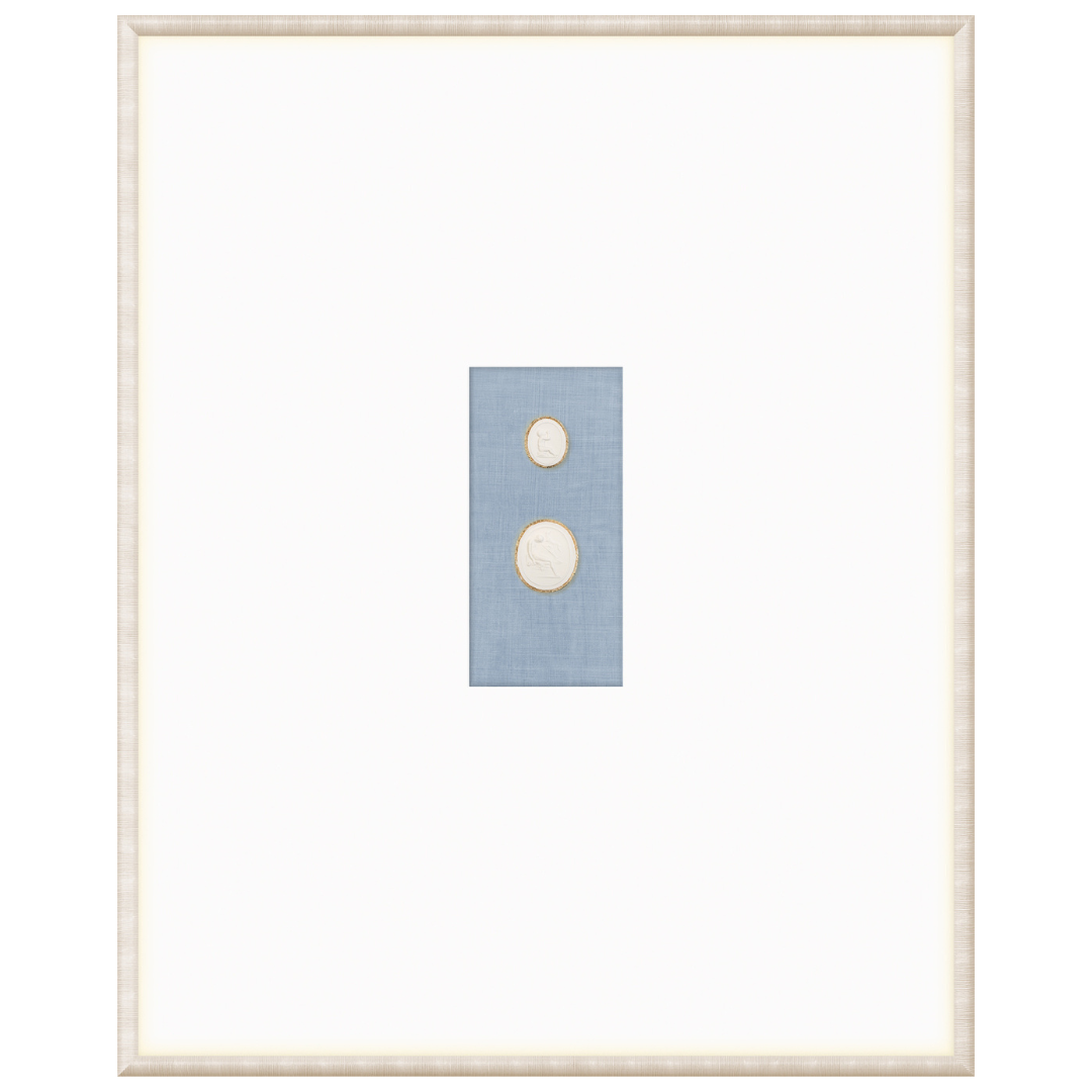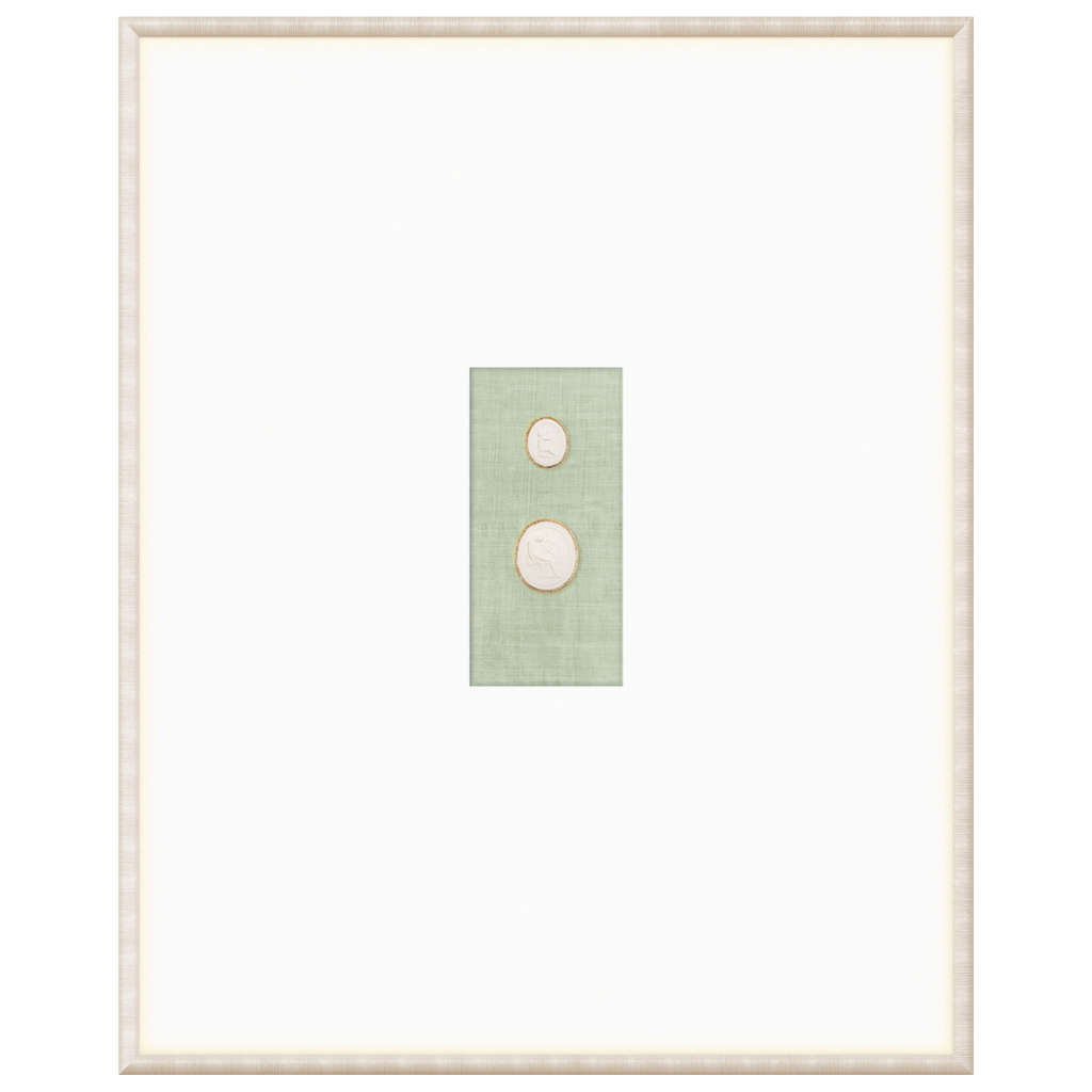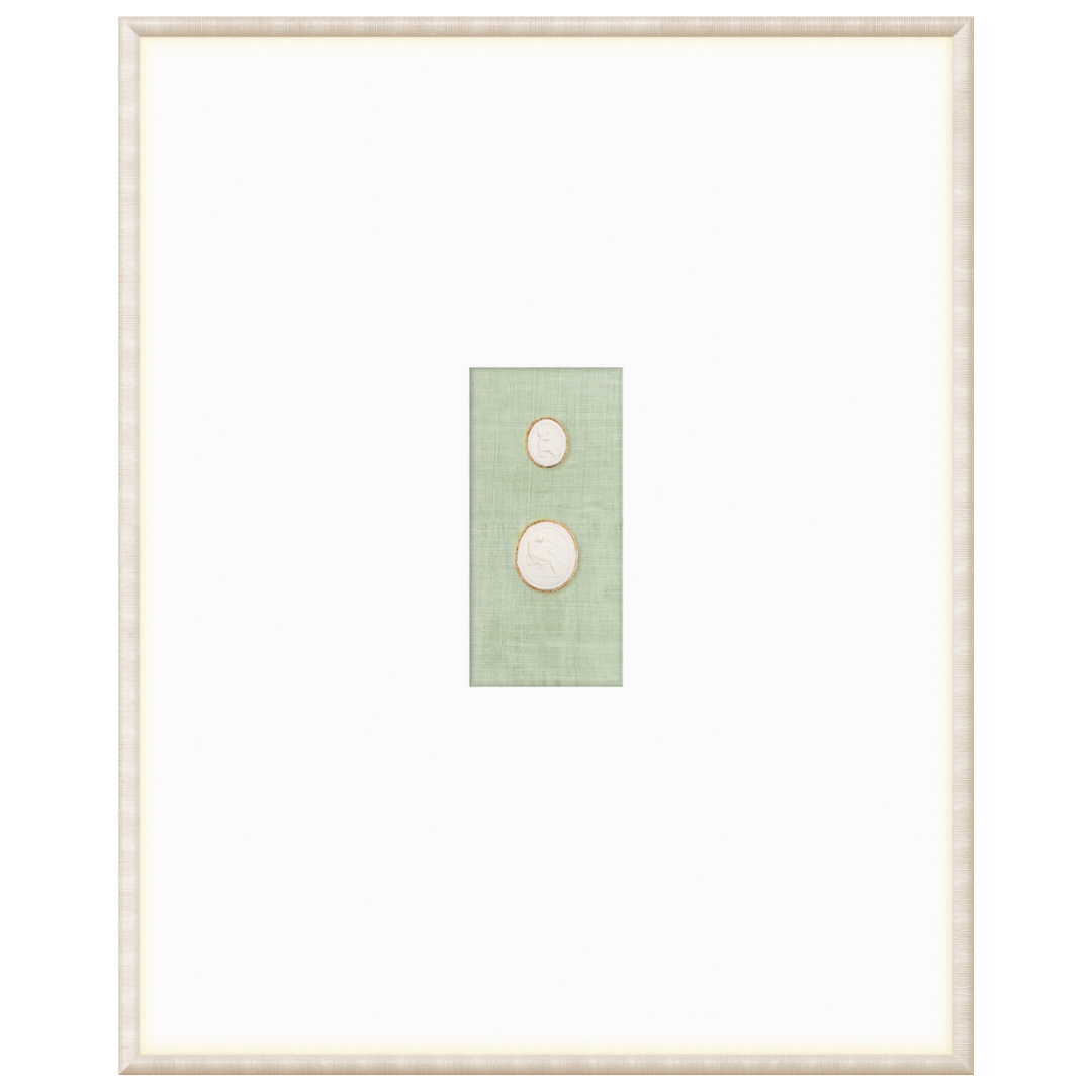 Our collection of Intaglios features both mythological and historical figures. Each one is hand-cast and gilded with fine gold filigree along the upper edge, framing the carved images and making them truly unique pieces. Each grouping is mounted on a linen texture background in a variety of colour options. They are framed in a light, neutral-toned moulding with a striated texture and a wide, raised matte with gilded framespace, giving them even more elegance and luxury. With our wide variety of arrangements and different combinations of Intaglios, you’re sure to find the perfect groupings for you.