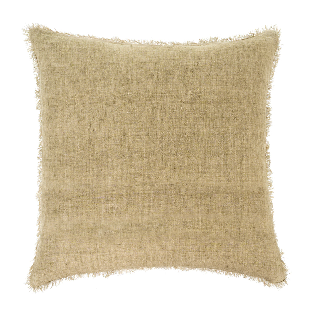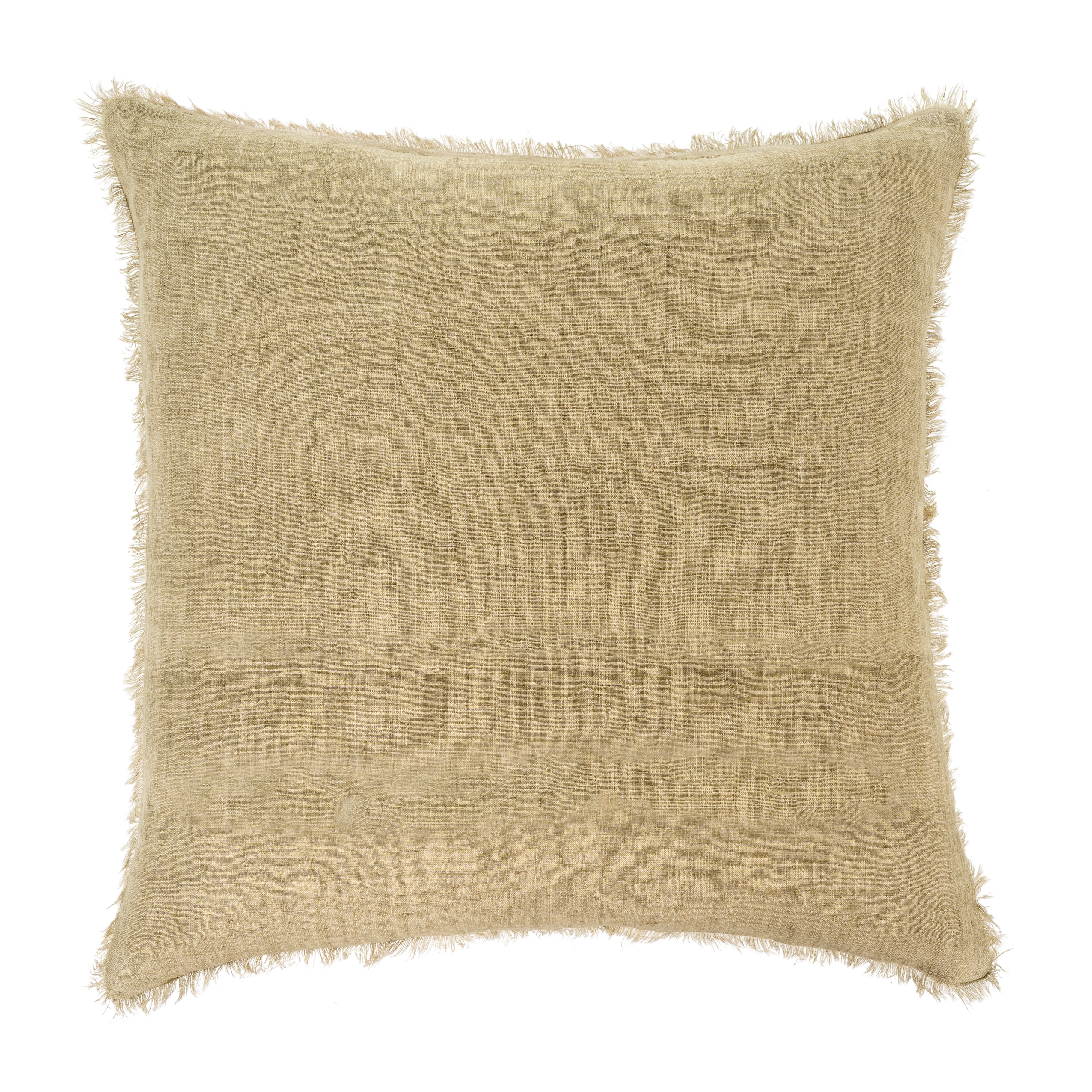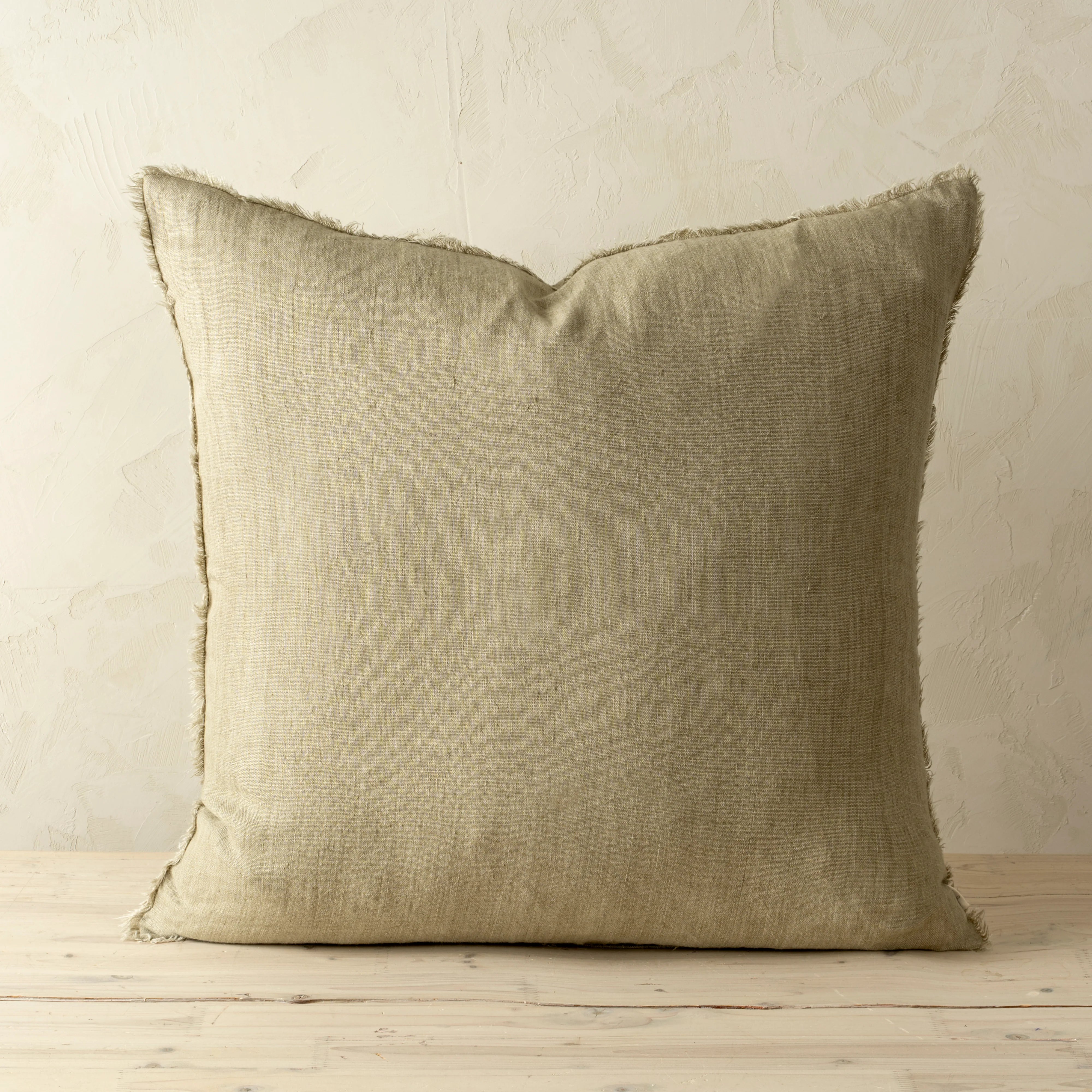 Classic linen is updated with a frayed edge, making them beautiful standalone cushions or backdrops for layering.